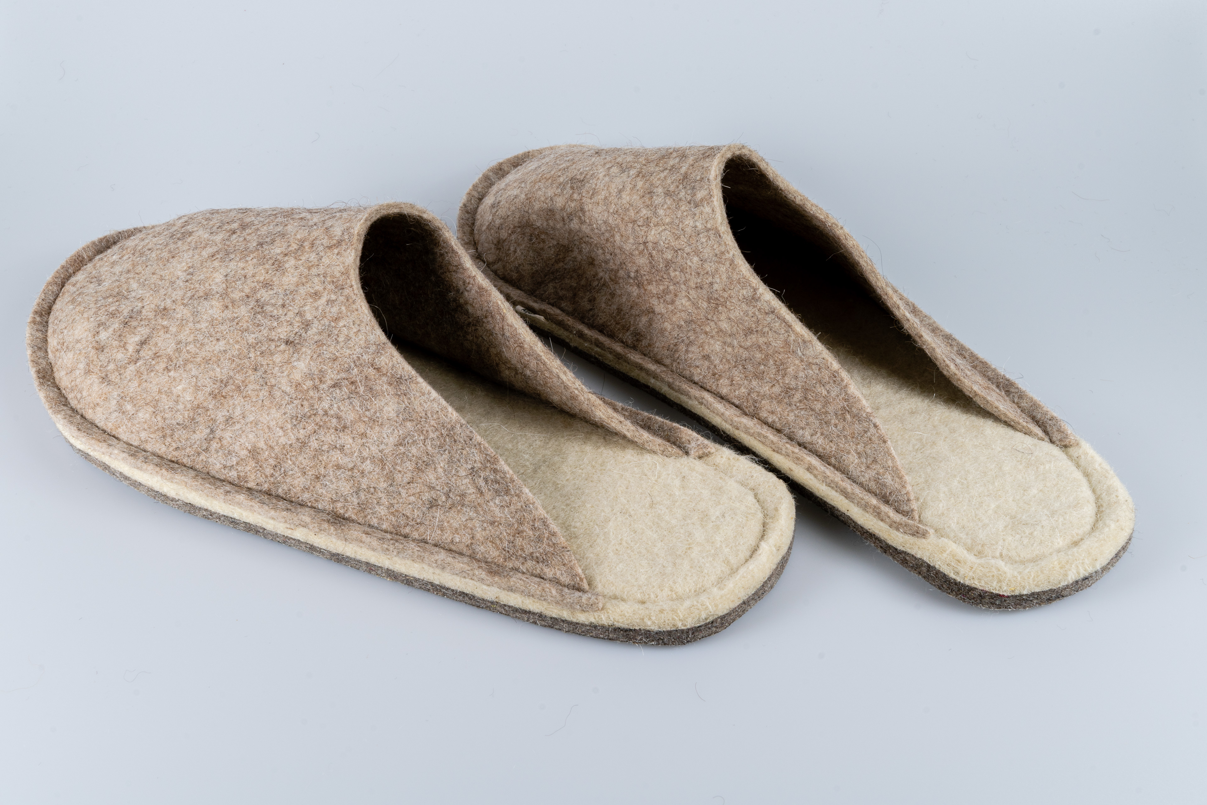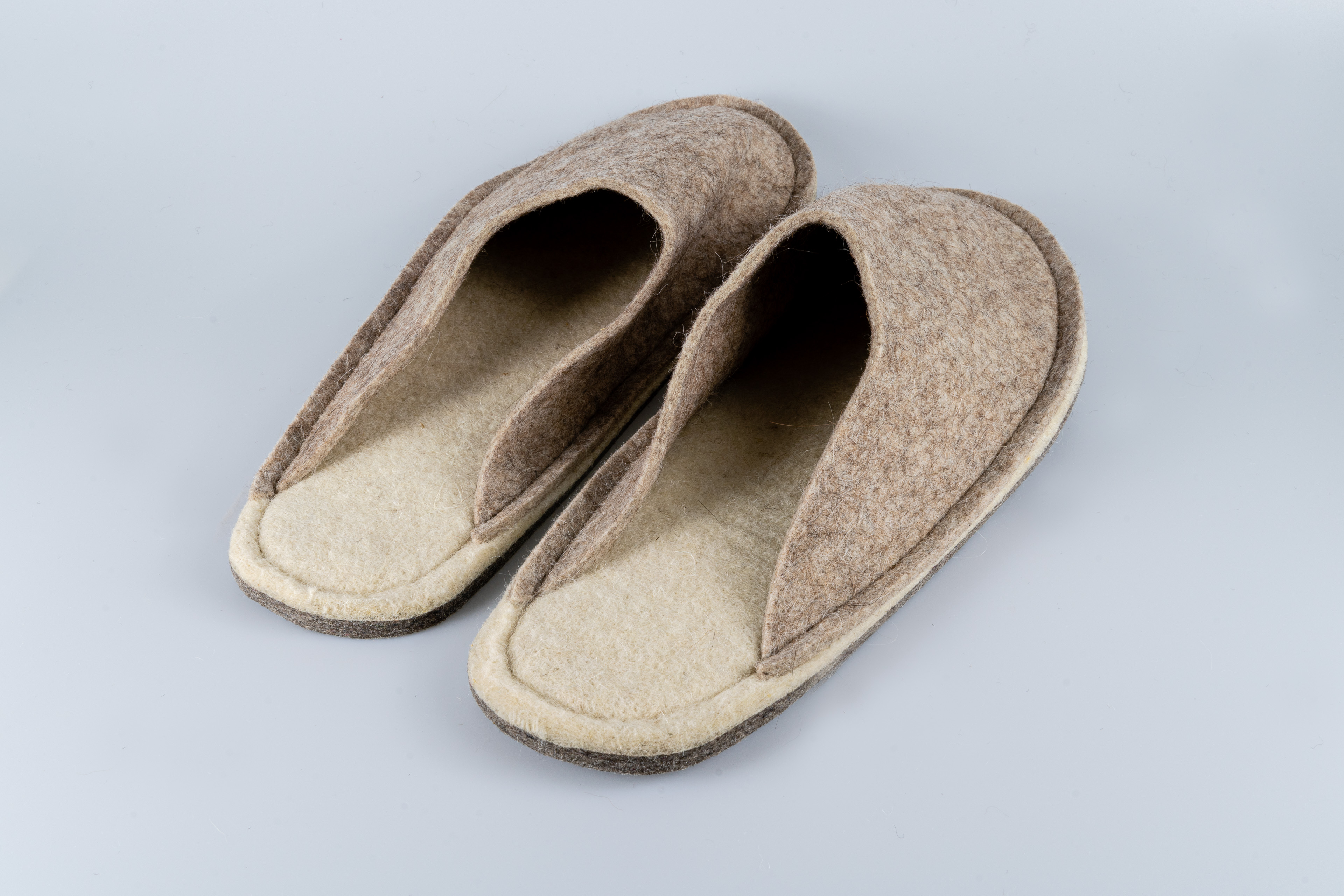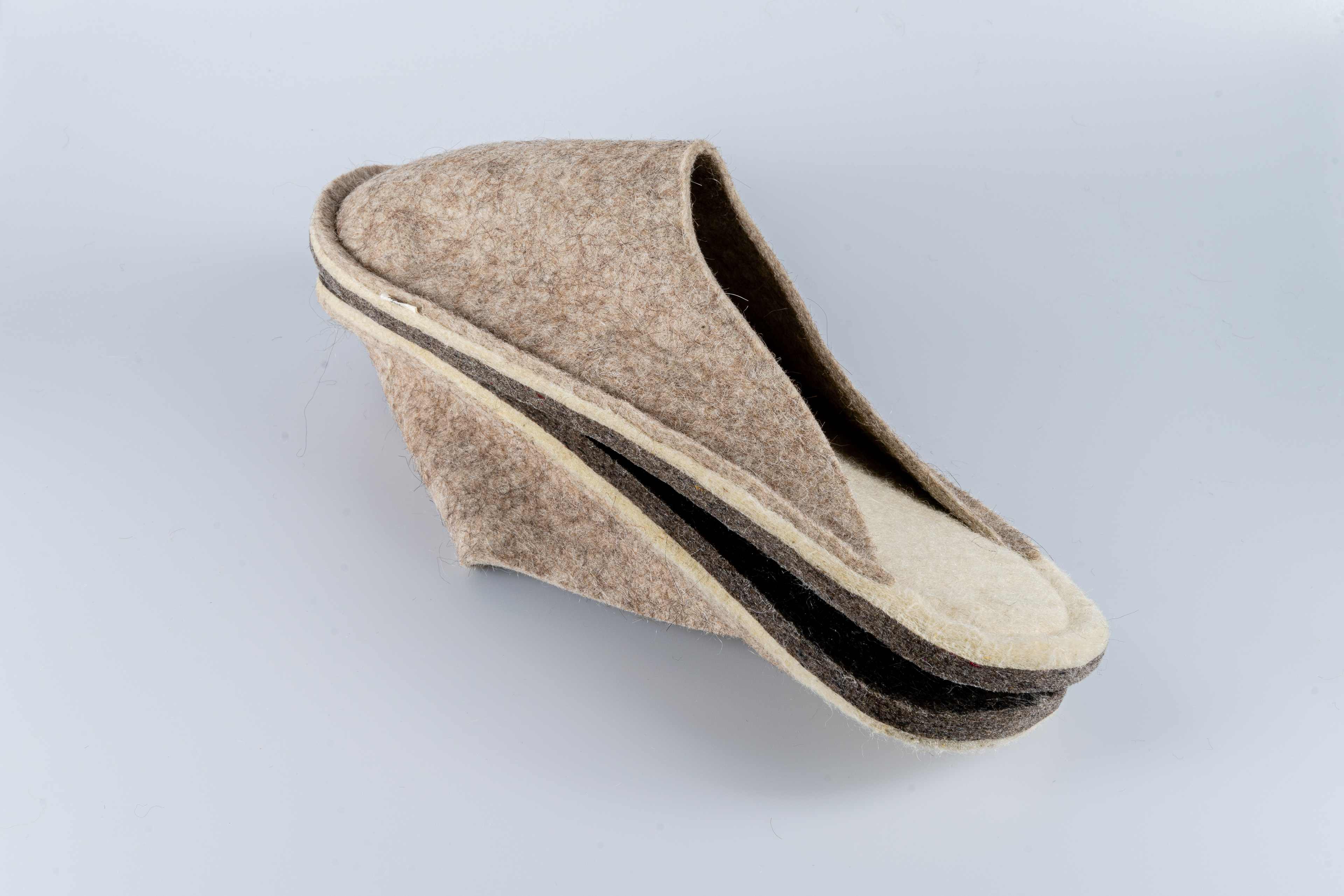 Diese Filzpantoffel bestehen nur aus Naturfasern.