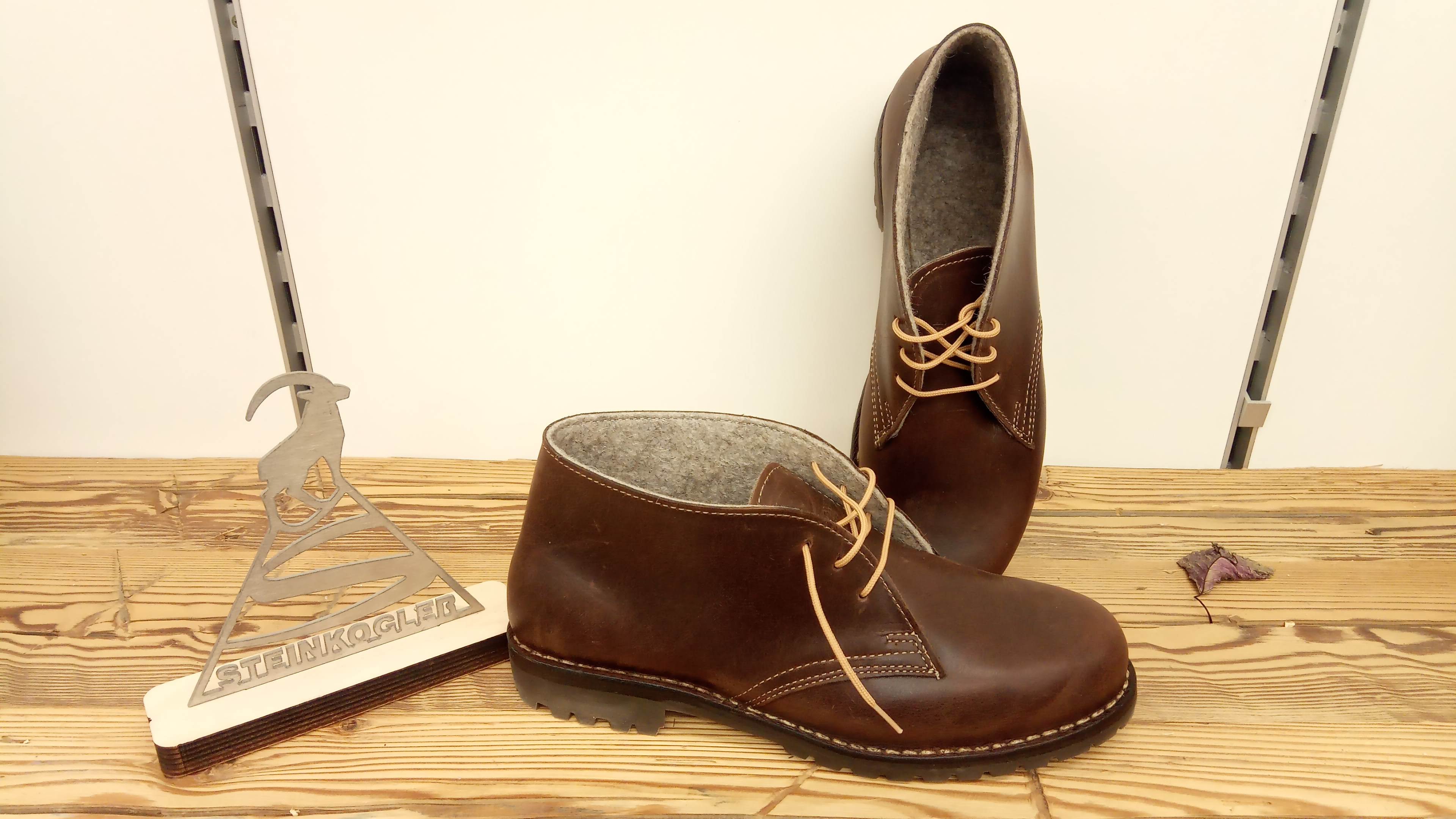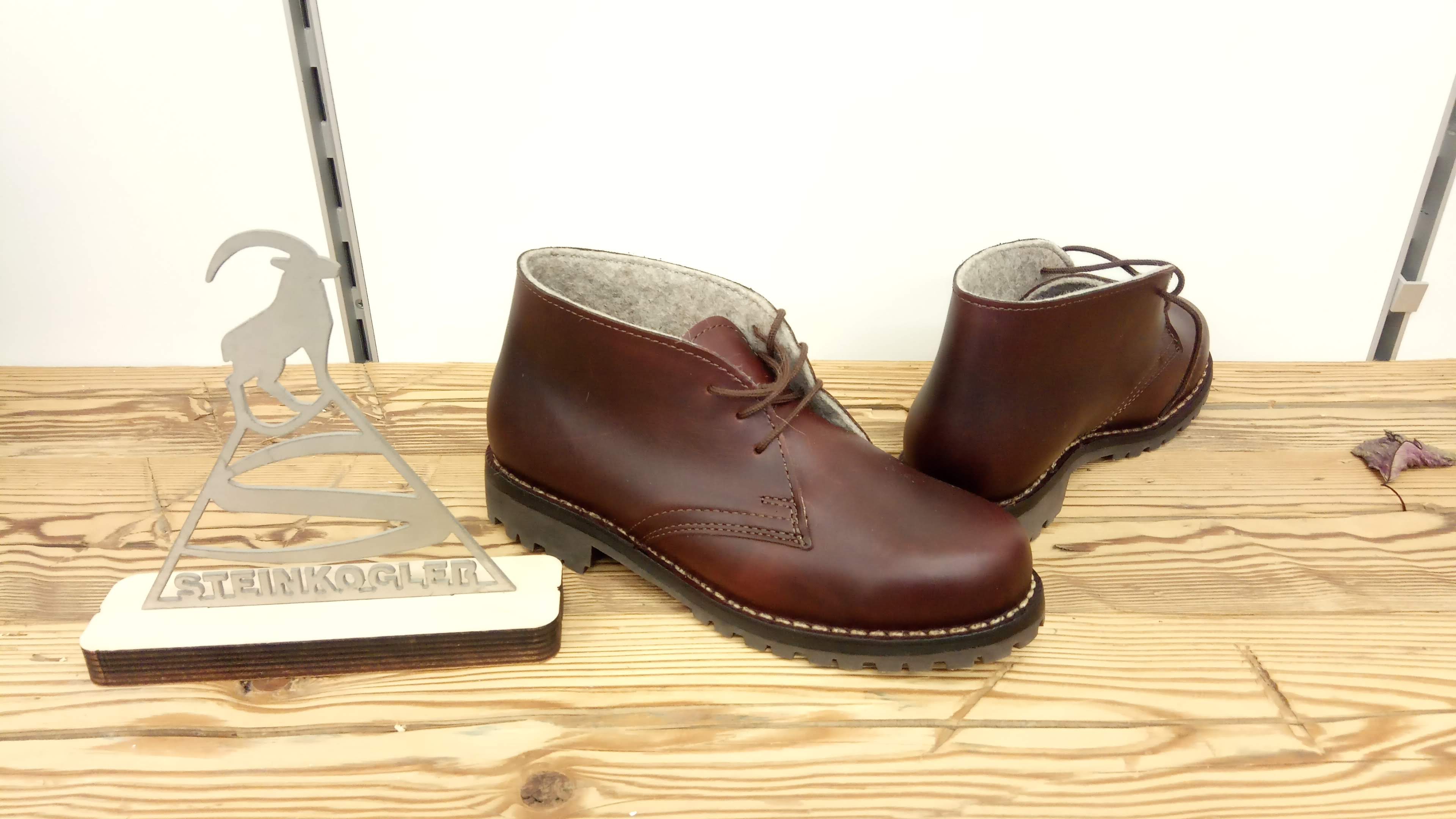 Genähte Schnür-Schuhe aus der österreichischen Bergschuhfabrik Steinkogler in Ebensee.