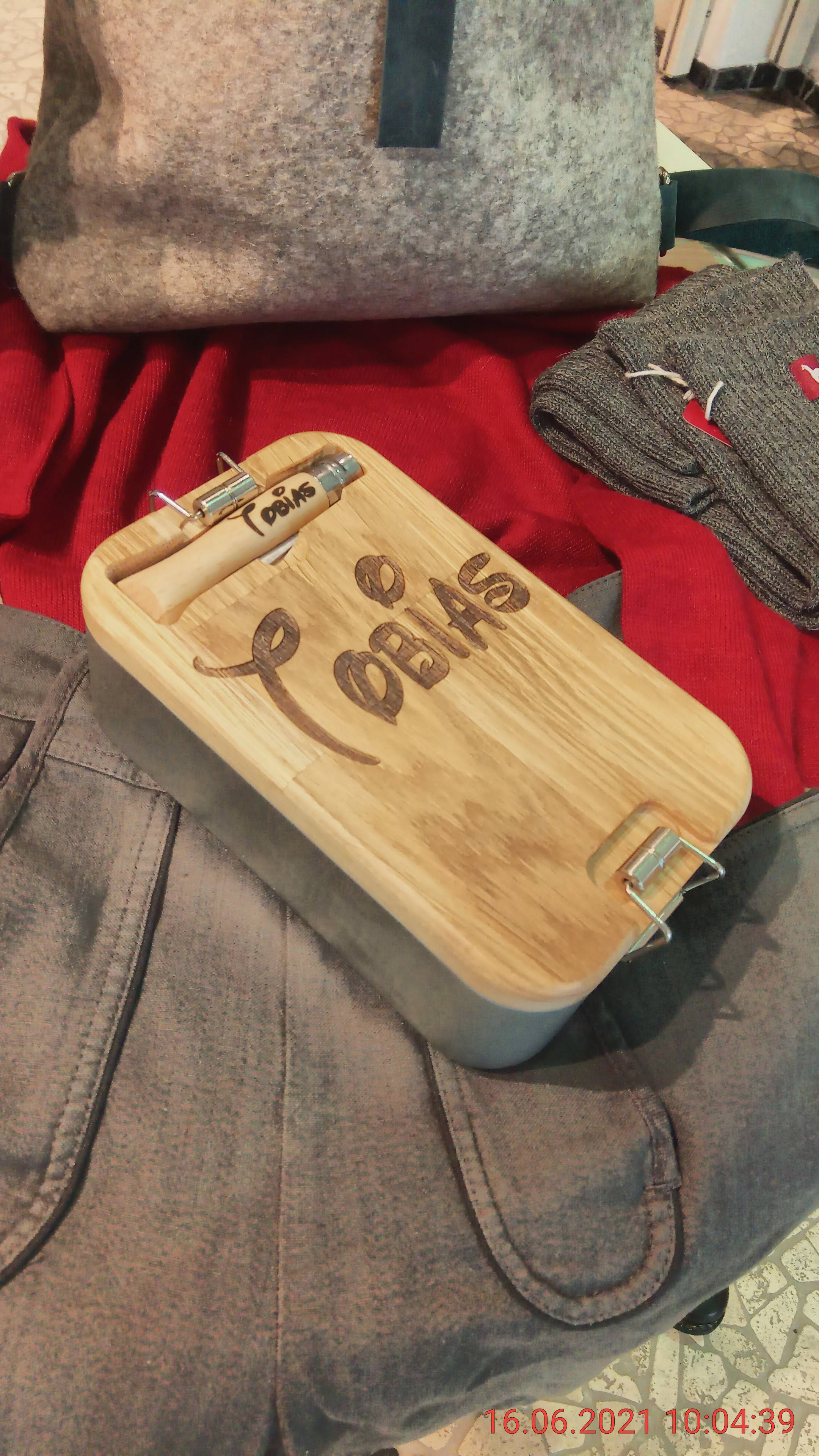Produktinformationen "Lunchbox mit Klappmesser (und Wunschbeschriftung)"