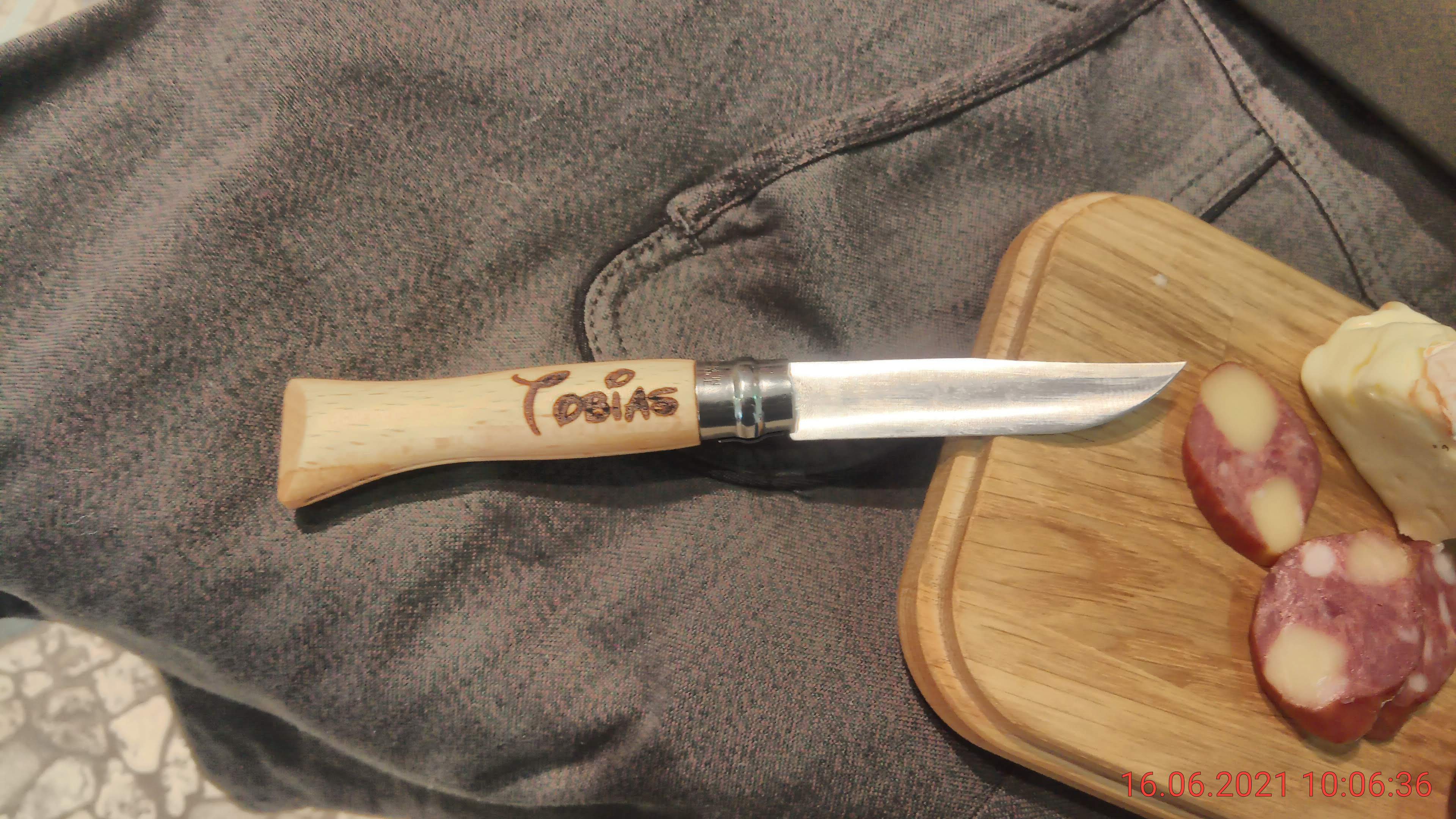 Das "Opinel" Klappmesser verfügt über eine hochwertige INOX-Stahl Klinge und eine Fixierung.
